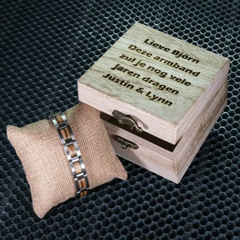 Eigen tekst op Gegraveerde Houten Walnoot armband