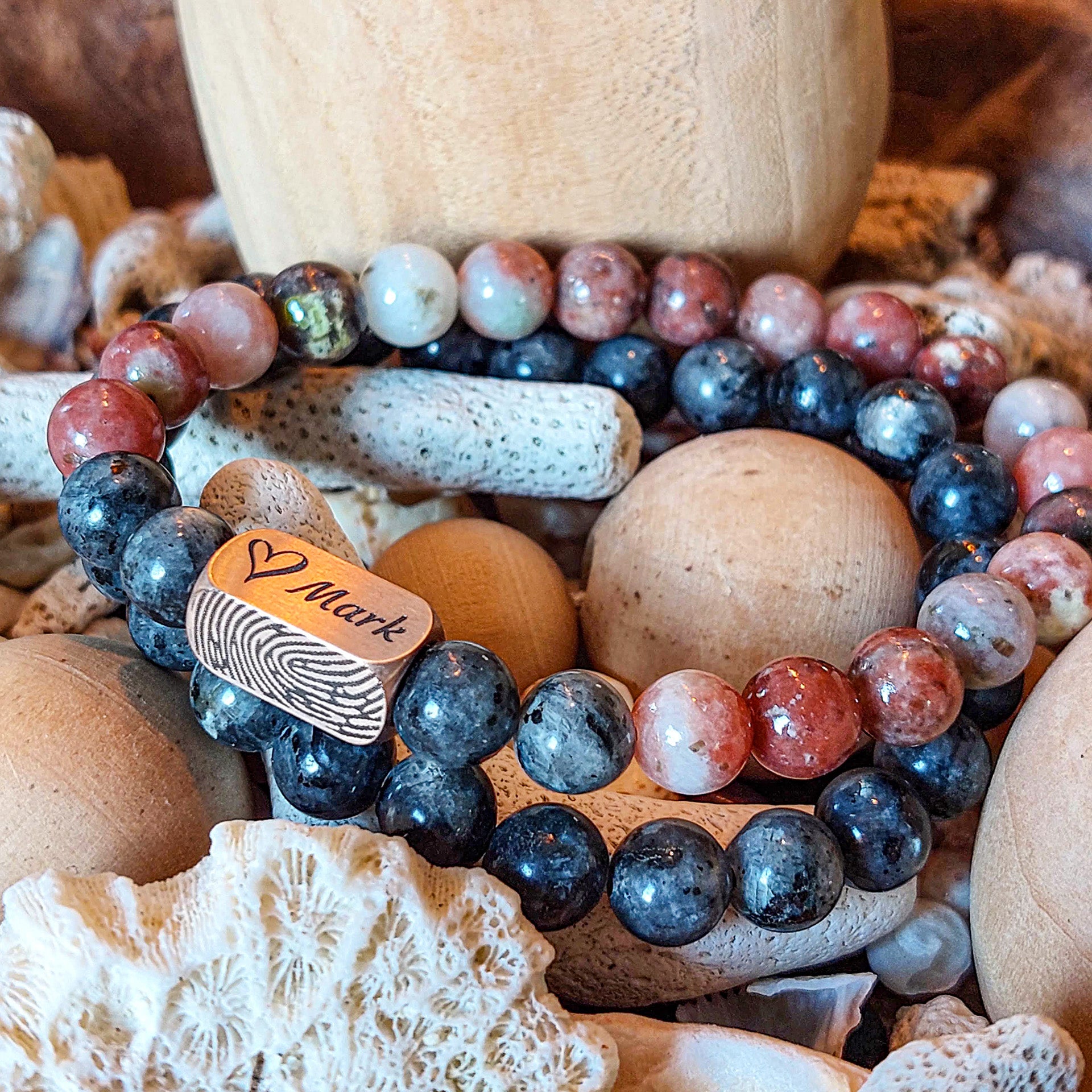 Vingerafdruk gravure op Dubbel gevlochten leren armband