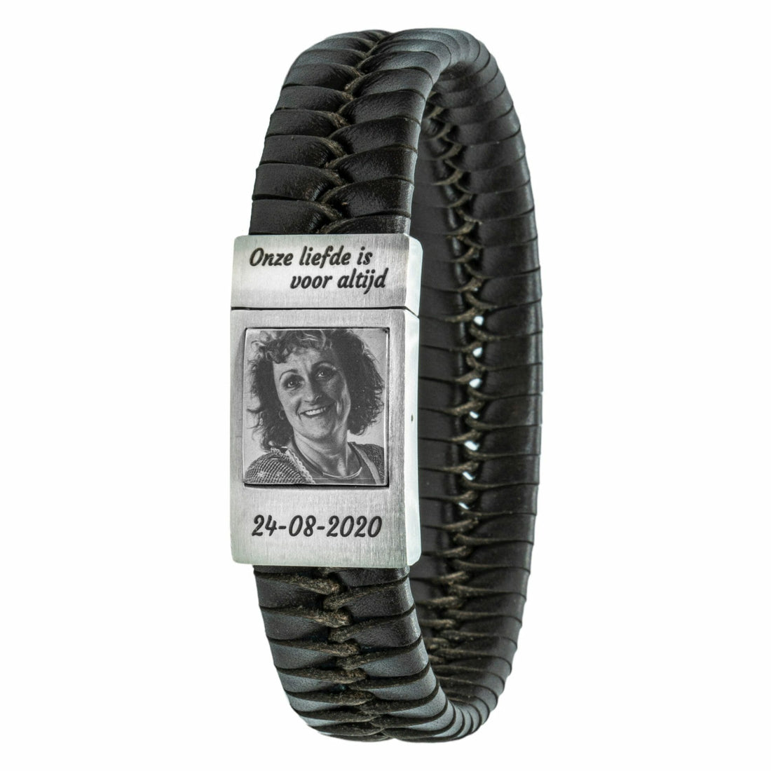 Eigen Foto op armband - Zwart leren Armband met Foto gravure