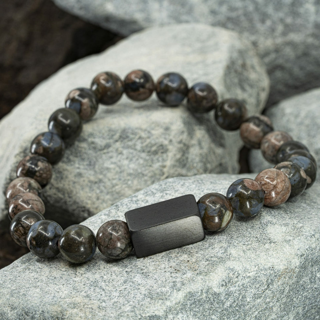 Heren 3 Armbanden Set: Zebra Stone • Lava Rock • Natural Jade