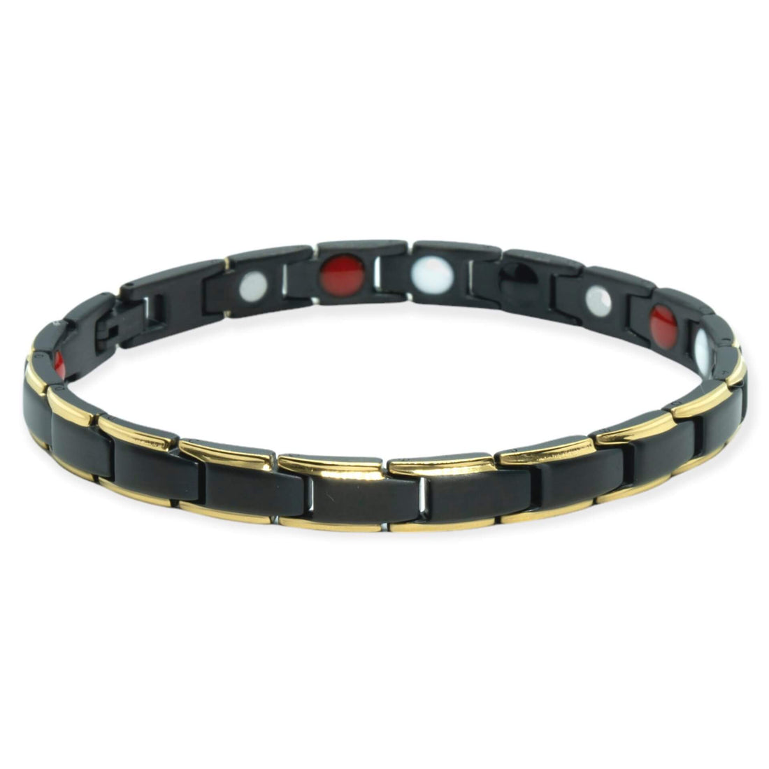 Magnetiva® Luxe Magneetarmband – Zwart met Siergouden Accenten