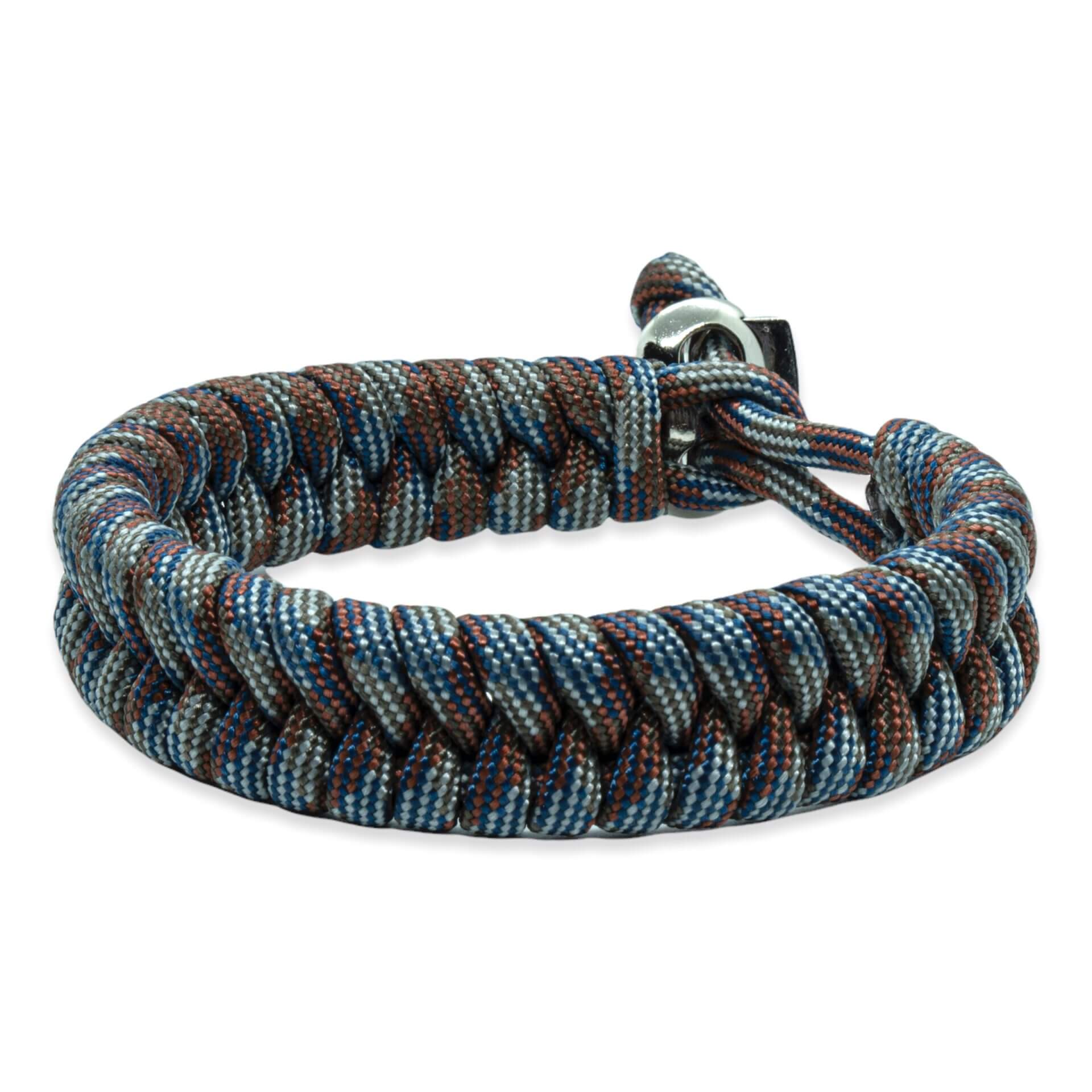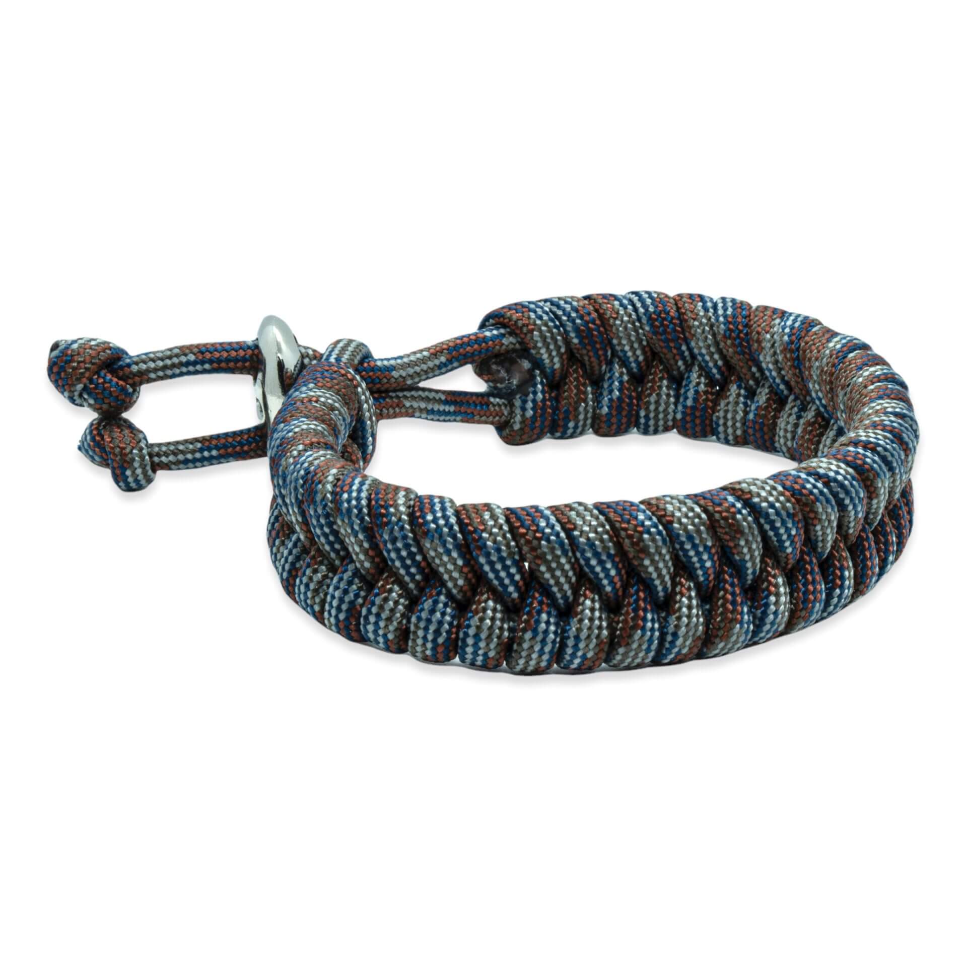 Op zoek naar een stoere, maar trendy armband? Dan is deze Zweedse staart armband in bruin, blauw en grijze touw kleuren precies wat je zoekt! De armband is handgemaakt van paracord en heeft een unieke Zweedse fish tail vorming. Door het verstelbare element past de armband perfect om iedere pols.