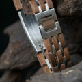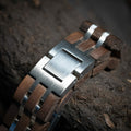 Deze armband heeft een breedte van 16 mm en is verstelbaar, wat betekent dat hij om elke pols past. Bovendien wordt hij geleverd met een handige luxe metalen verstelset. De armband is gemaakt van roestvrij staal 316L en walnoot hout.