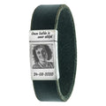 Maak je eigen persoonlijke armband met jouw vingerafdruk erop gegraveerd. Eigen gravure van je vingerafdruk op de armband zorgt voor een unieke look! Daarnaast kun je zelf de kleur van het leder bepalen. Zo kun je kiezen tussen een zwarte, (licht)bruine of grijze tint. Naast deze kleuren, kun je er ook voor kiezen om te gaan voor bijvoorbeeld een zwart, bruin of cognac gevlochten leer. Je kunt ook je eigen tekst boven of onderop het sieraad laten graveren.