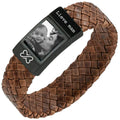 Fotoarmband Dames Gevlochten bruin leer - Eigen Foto op armband