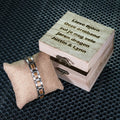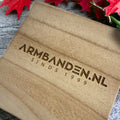 Op zoek naar een unieke manier om je armband op te bergen? Zoek niet verder dan onze persoonlijke houten verpakking met eigen tekst! Dit stoere en robuuste houten opbergdoosje is perfect voor het veilig bewaren van je favoriete sieraden.