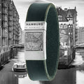 Kaart (Hamburg) op armband - Zwart leer met je eigen dorp