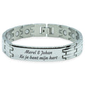 Deze roestvrij stalen armband heeft een prachtig design met schakels die zorgen voor een elegante uitstraling. Maar dat is niet alles! Met de mogelijkheid om je eigen tekst te laten graveren, maak jij deze armband helemaal persoonlijk en uniek.