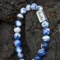 De Poseidon - Sodaliet - Eigen Tekst Kralen Armband is een absolute must-have voor elke liefhebber van blauwe edelstenen. Deze armband is gemaakt van hoogwaardige sodaliet-edelstenen die vol zitten met natrium en schoonheid. De prachtige blauwe kleur van de stenen is werkelijk adembenemend en zal zeker de aandacht trekken van iedereen om je heen.