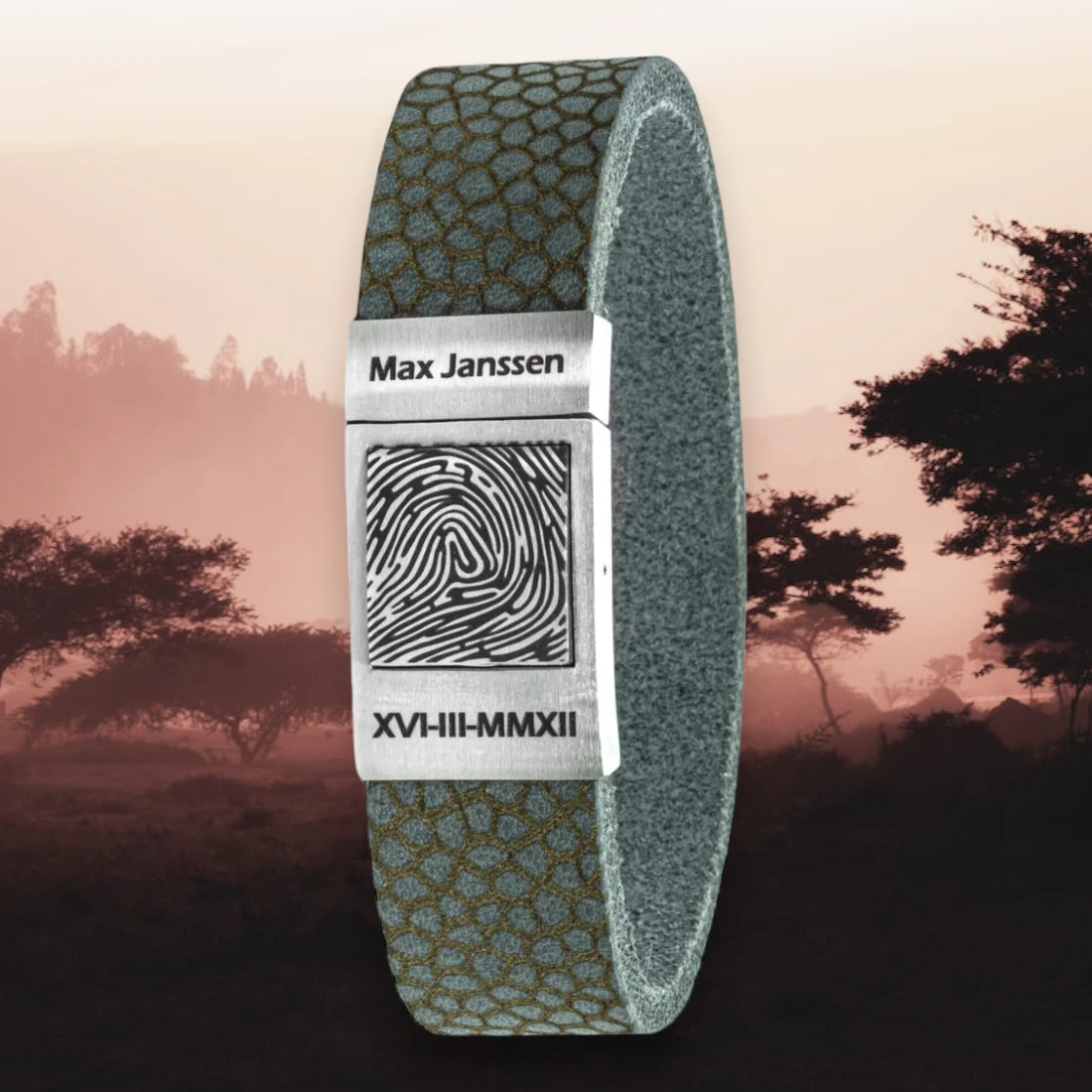 Met onze handgemaakte vingerafdruk armband houd je jouw dierbare altijd dichtbij. Door het aanleveren van een foto van jouw vingerafdruk, creëren wij een unieke en persoonlijke armband die niemand anders heeft. Ons recent ontworpen design is zelf samen te stellen met unieke patronen en komt uit onze nieuwste gravure collectie.
