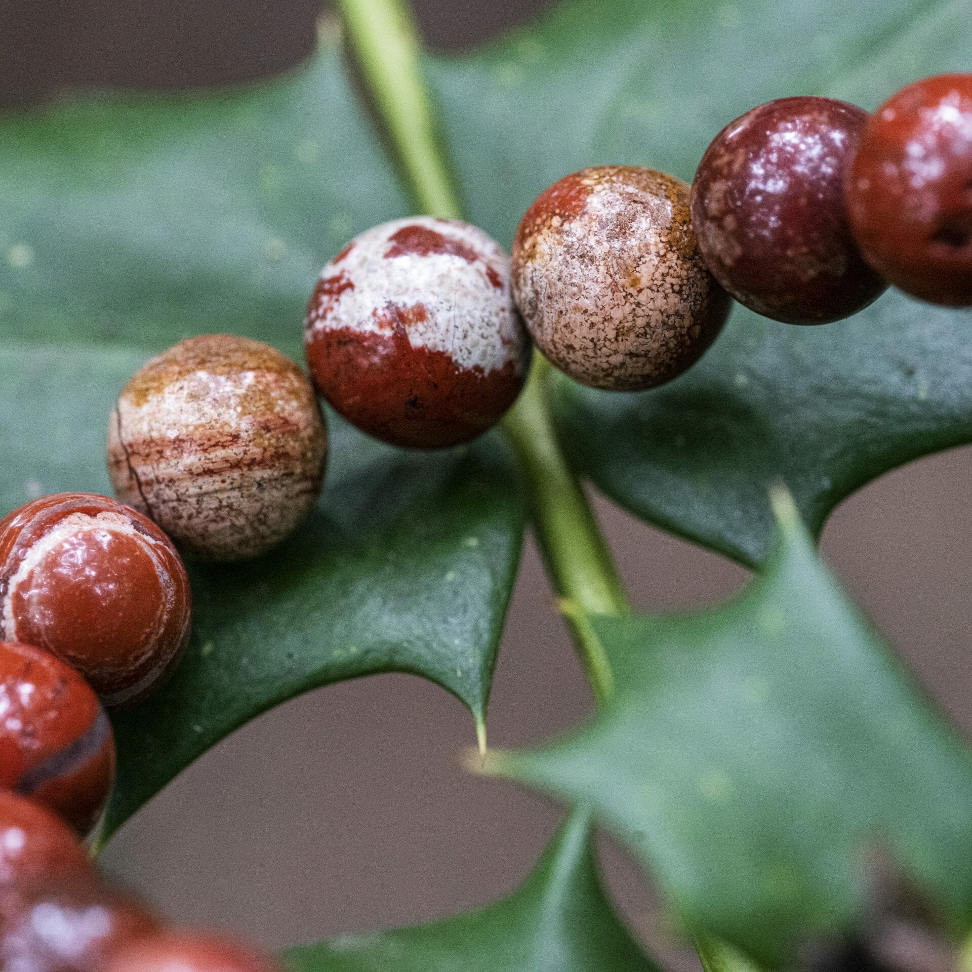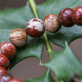 De kralen van deze armband zijn gemaakt van Red Sesame Jasper (naturel), welke een vergelijkbaar uiterlijk heeft als de Verweerde Jasper. De donkere tinten van baksteenrood en grijze strepen in combinatie met doorschijnende kwartsinsluitsels geven deze armband een unieke uitstraling.