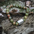 Deze armband bevat zorgvuldig geslepen kralen die allemaal zijn vervaardigd uit deze krachtige steensoort. Draag hem om te genieten van de voordelen van unakiet: versterking van je spirituele energie, verbetering van je emotionele toestand en versterking van je fysieke lichaam.